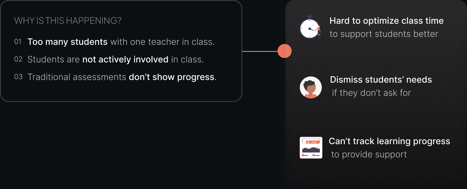 As teachers are unsubstitute resource to support personalized learning in the class, we tried to optimize their time and energy so that they are able to support students individually.